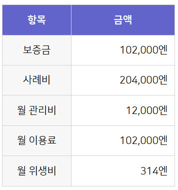 유니라이프는 학생전용 일본부동산입니다. 따라서 일반적으로 일본부동산과 계약할때 지불하는 보증금, 사례금, 보증보험료, 사례비, 서류작성비, 화재보험료, 열쇠교환비, 청소 및 방역비 등 기타비용이 청구됩니다. 한국처럼 보증금과 월세만 지불하는 문화가 아니므로 방을 구할 때는 비용이 많이 들어갑니다. 보증금은 퇴실시 돌려받는 금액입니다.