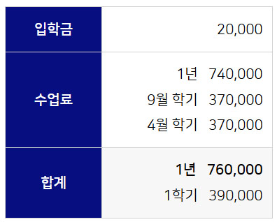 연수기간은 가을입학의 경우, 1년 또는 6개월입니다.