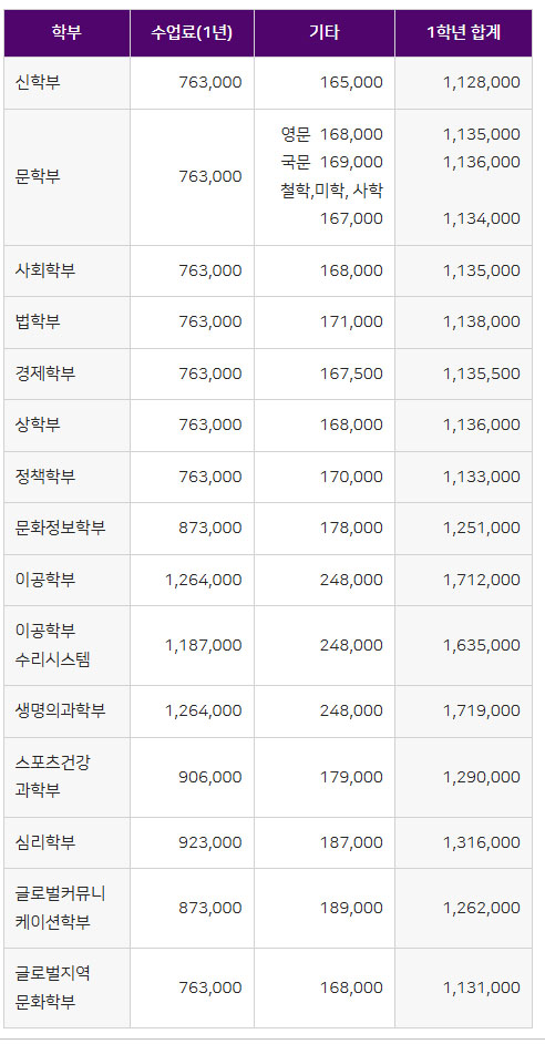 2025년 4월입학 신입생 1년 학비입니다.